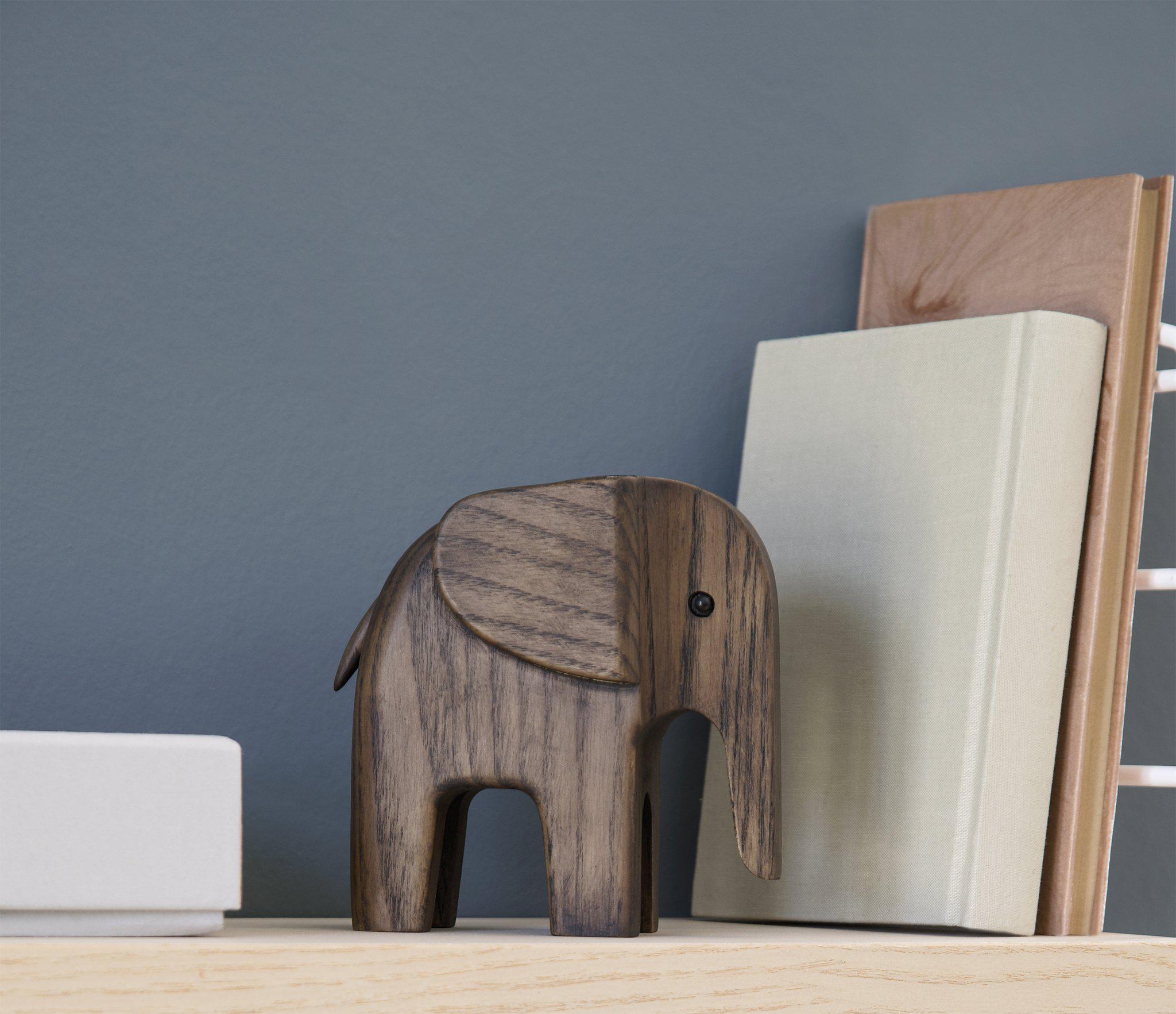 NOVOFORMs elefant i røgbejdset asketræ er ikke bare en dekorativ figur; den er et symbol på omtanke og empati, egenskaper som elefanter er kjent for i dyreverdenen. Denne skulpturen er en hyllest til disse majestetiske dyrene, og bringer en følelse av varme og visdom inn i ethvert rom.