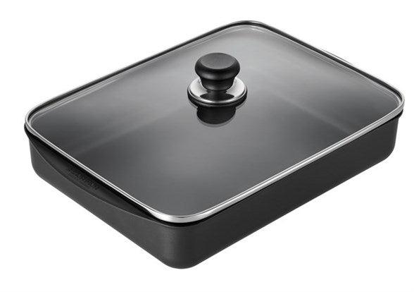 SCANPAN Låg Stekepanne 35,5 x 26,5 cm er et essensielt tilbehør for ethvert kjøkken, designet for å forvandle din stekepanne til en effektiv stekegryte. Dette lokket er skreddersydd for å passe perfekt til SCANPANs Classic stekepanner på både 3,25 og 5 liter, og tilbyr en sømløs overgang fra steking til damping eller langsom koking.
